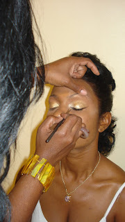 Since we talk a lot we decided to start the makeup application early. What I like about Stephanie style is that she is always GLAM, ELEGANT and CLASSIC with her hair, makeup, dresses and jewelry. Now she calls me the QUEEN of BLING, but yesterday Stephanie wore this amazing swarovski crystal bracelet and earrings. LOVED IT!!! So you know my mouth dropped when I saw it. All my money always goes on expensive handbags, jewelry, and property. I'll treat myself to shoes sometimes and I am not big on having a fancy car. My favorite car would be an AUDI TT. I know right the Queen of BLING. So when I saw all that bling I knew I had to make her eye make pop. Last year I gave I thought great eyes and when she showed me the article in the paper the makeup looked good but I had to do something really bold to the eyes for this year Jazz Fest performance.